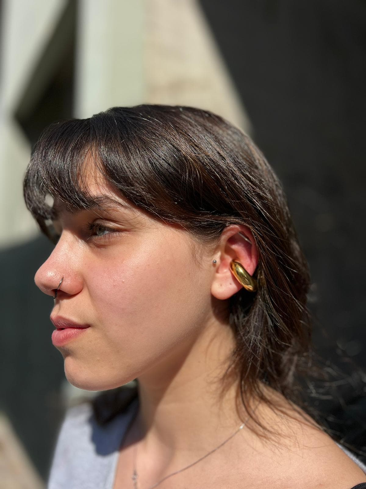 Lโ€™ear cuff chunky รจ pensato per chi vuole un impatto visivo forte senza bisogno di fori.